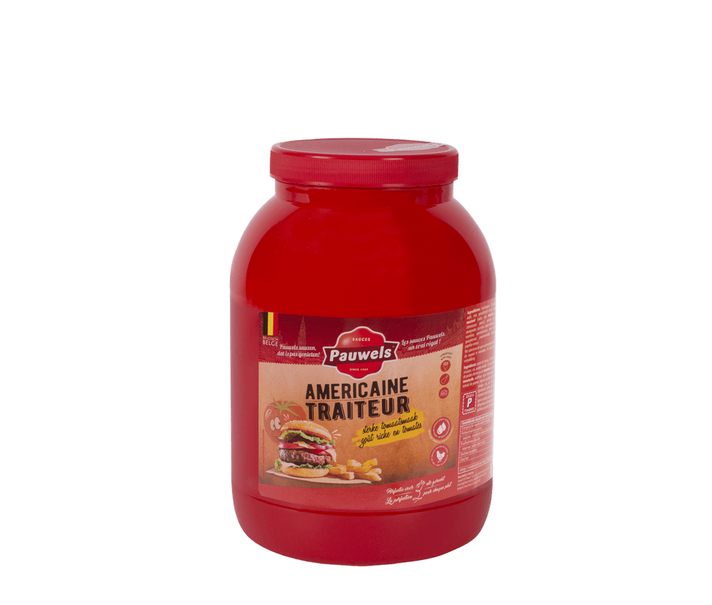 L'Americaine Traiteur de Pauwels Sauces est une délicieuse sauce qui se distingue par sa teneur élevée en tomate et son mélange au goût subtil d'oignons, de poivrons et d'autres assaisonnements. Cette sauce peut parfaitement être combinée avec des plats à base de viande rouge comme les hamburgers et les grillades au barbecue, mais aussi avec des frites ou du poulet!
