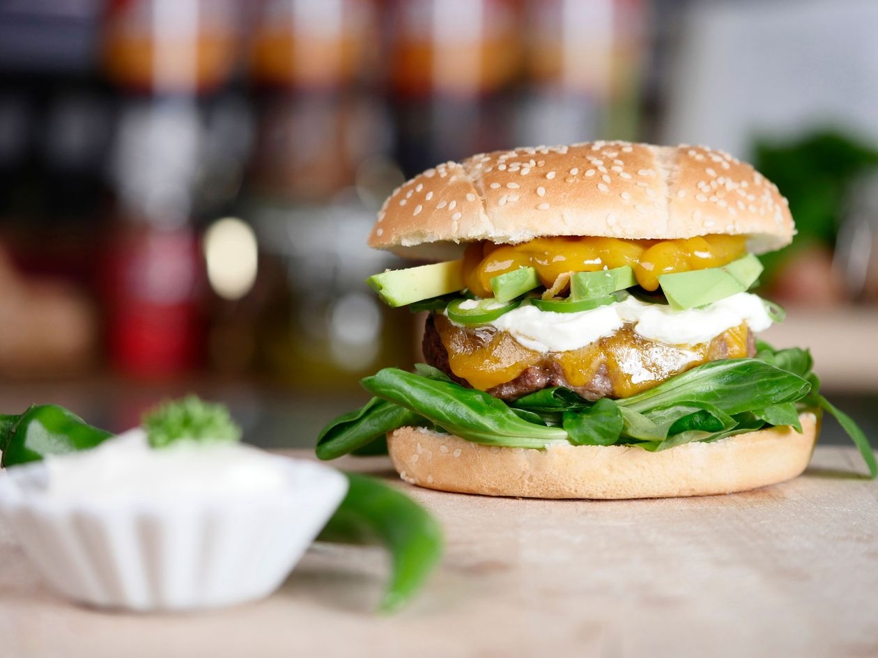 Een gerechtje dat de spicy lovers zeker zal bekoren is deze pikante rundsburger met cheddar, avocado, jalapeño pepers en de kruidige Pauwels Hamburger Hot.