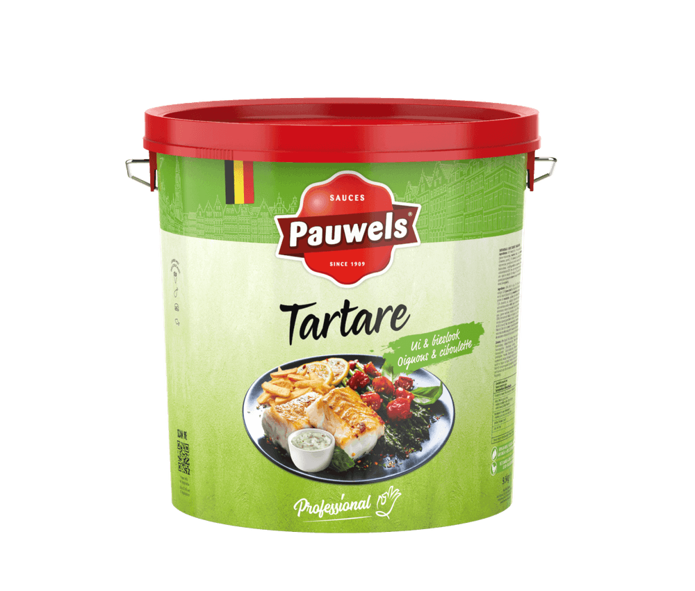 Tartaar met frietjes, met gepaneerde vis of met knapperige scampi’s. Waarmee je 'm ook serveert: de tartaarsaus is onlosmakelijk verbonden aan onze eetcultuur. Bij Pauwels Sauzen verwennen we dan ook zeer graag die echte Bourgondiërs met een heerlijk romige tartaar, rijkelijk aangevuld met eigeel van scharrelkippen, fijngesnipperde peterselie, bieslook en knapperige stukjes ui.